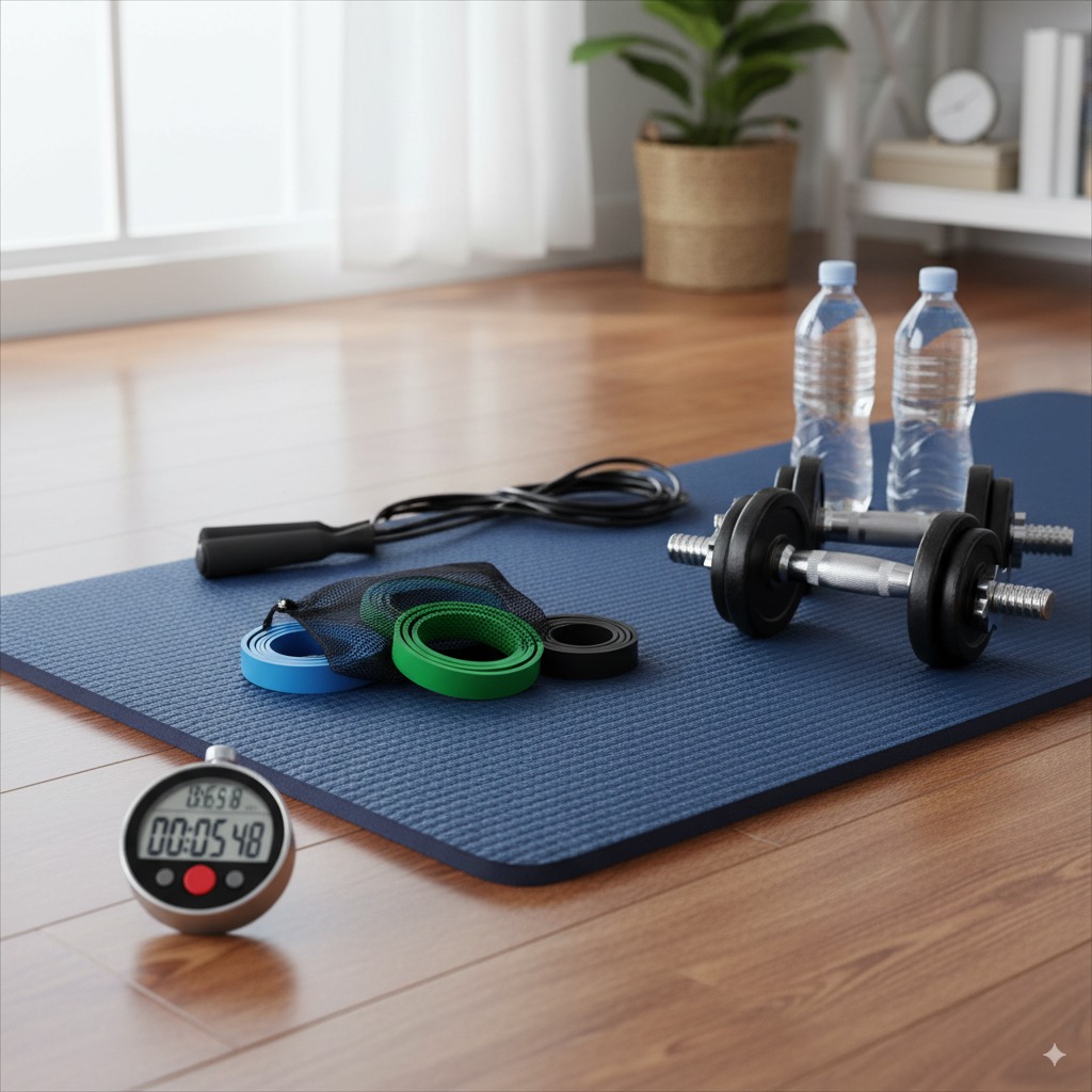 No necesitas un cuarto exclusivo para tu gimnasio ni máquinas sofisticadas. Un rincón luminoso y ventilado en casa es más que suficiente. Con unos cuantos accesorios básicos podrás hacer ejercicios variados y efectivos. Lo ideal es tener: