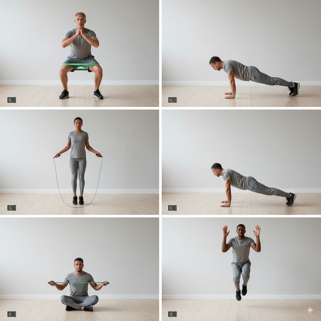 6. Burpees o ejercicios dinámicos para cardio y fuerza.